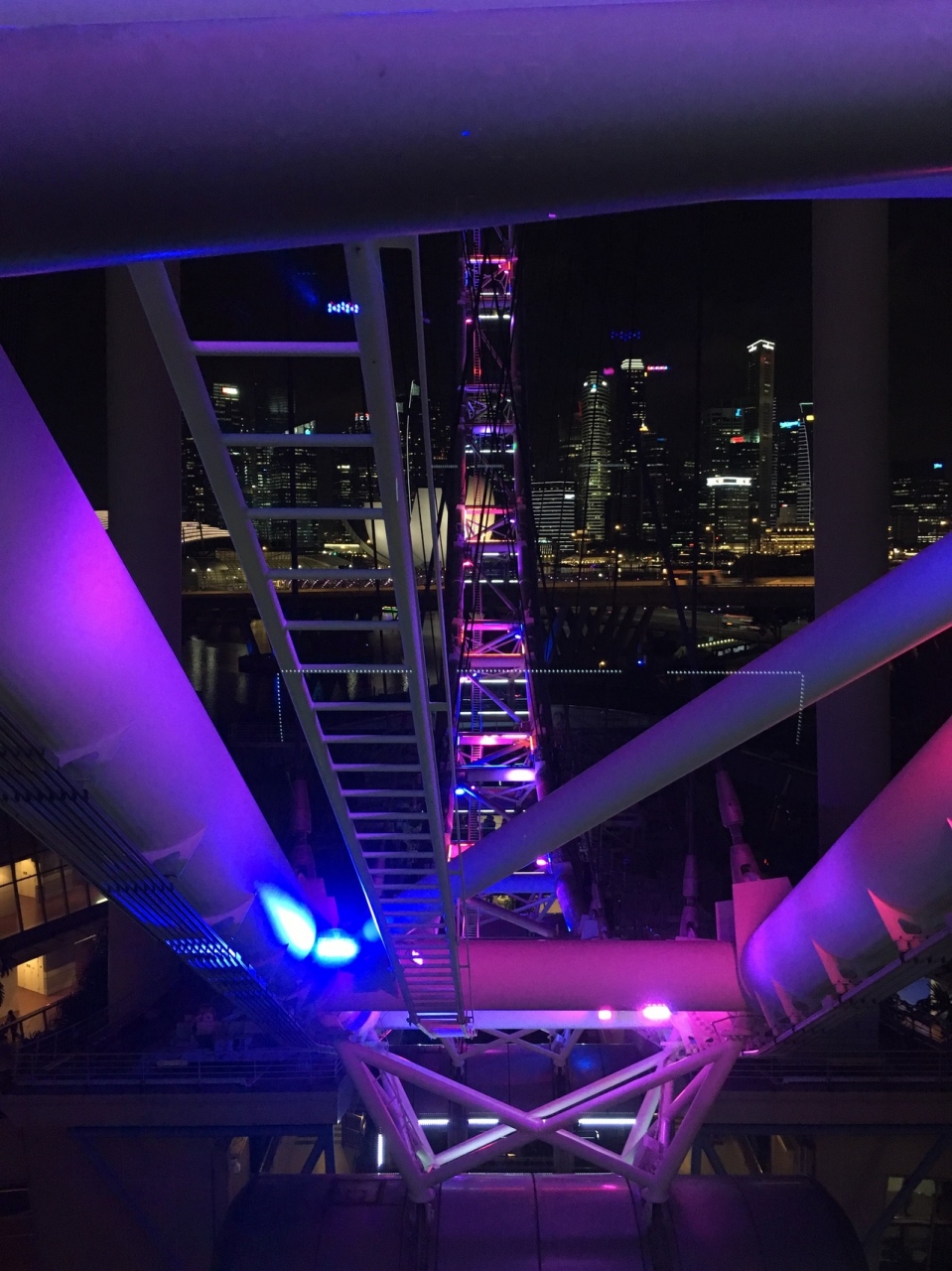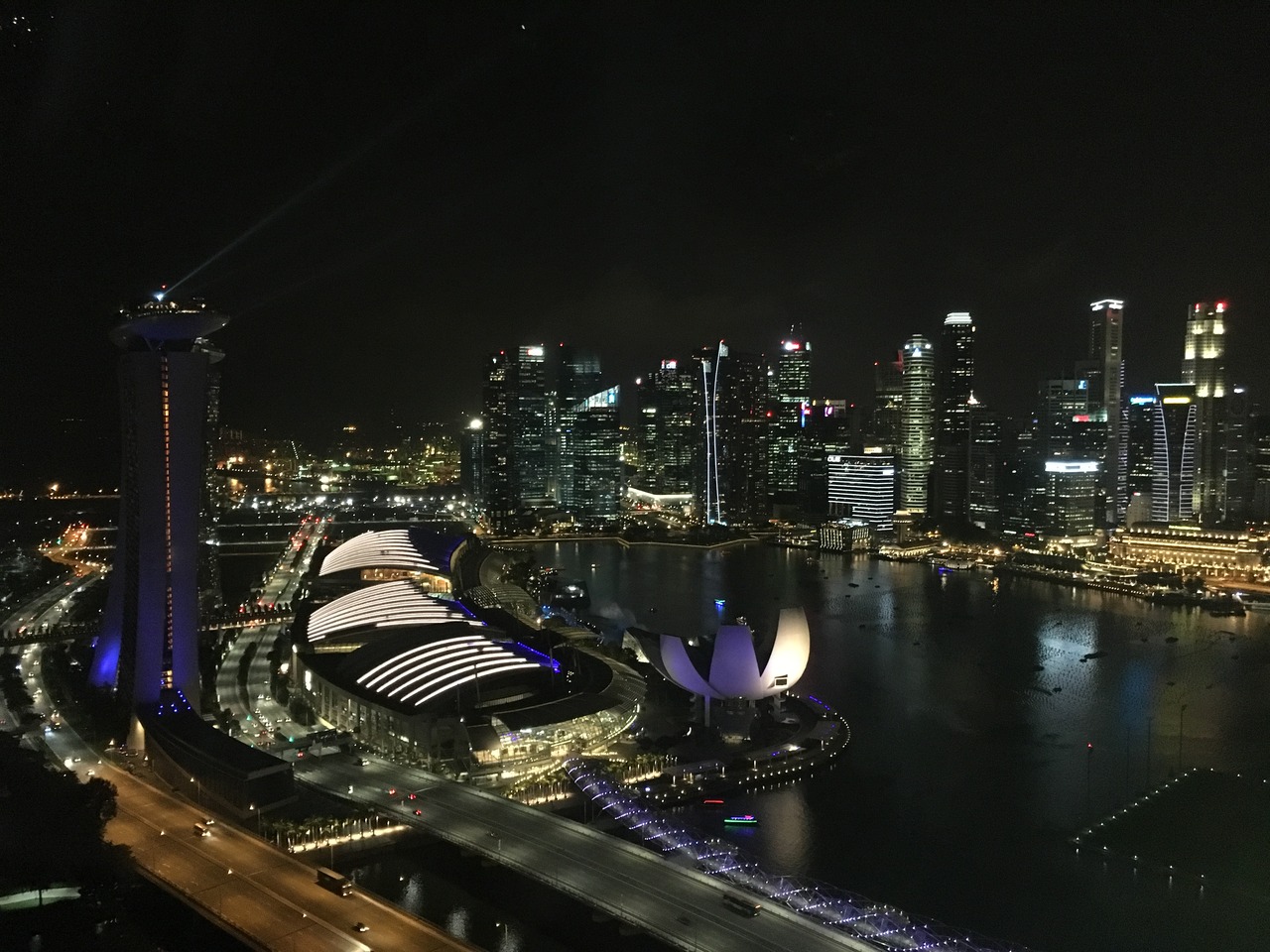 マリーナベイサンズより高さはないし、あまり期待していなかったのですが、大型のゴンドラは360度どの景色も見回せて、夜景は本当に綺麗でした。