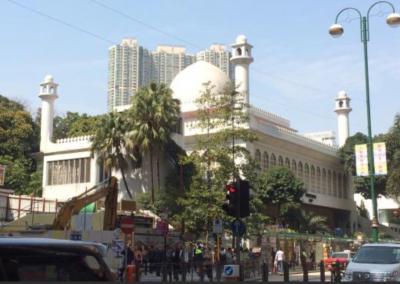 夜のネオンで有名なネイサンロード沿いにあるイスラム教のお寺。周りは宝石屋やドラッグストアだらけだけあって、少し違和感はある。お寺周辺には多くはないがイスラム教徒の方もいらっしゃり、若干その雰囲気を感じることができる。