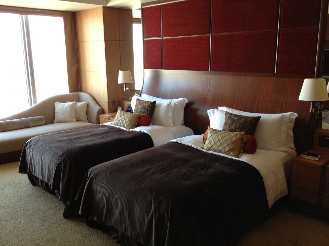 入口が非常に豪華な作りになっていて、レジデンスは真ん中の受付に。左右の建物は分譲のマンションになっているように思われる。レジデンスにはジムやプールがついており、朝食もバイキング形式。ビリヤードもプレイすることが出来る。部屋の中も広く、バスルームも広々していて使いやすい。たんすも容量十分。地下鉄の駅も徒歩圏内、コンビニは徒歩1分。