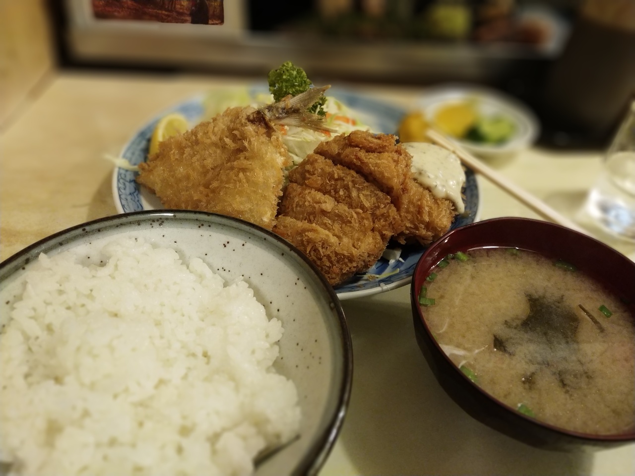 交通会館の地下にあるとんかつ屋さんで、いつも行列ができるお店です。カウンターだけなので比較的回転は速く20分くらいで座れることが多いです。カツ丼が人気のようですが他にもアジフライやカニクリームコロッケなどもあり、お好みセットで少しずつ色々な味を楽しむこともできます。