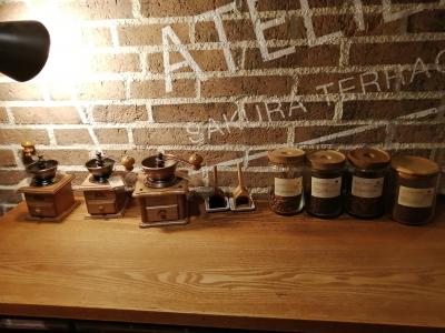 コーヒーは自分で豆を挽いていつでも飲めます。お茶の種類も豊富です。