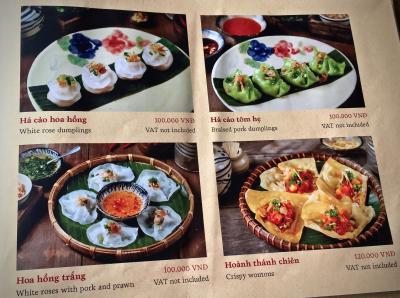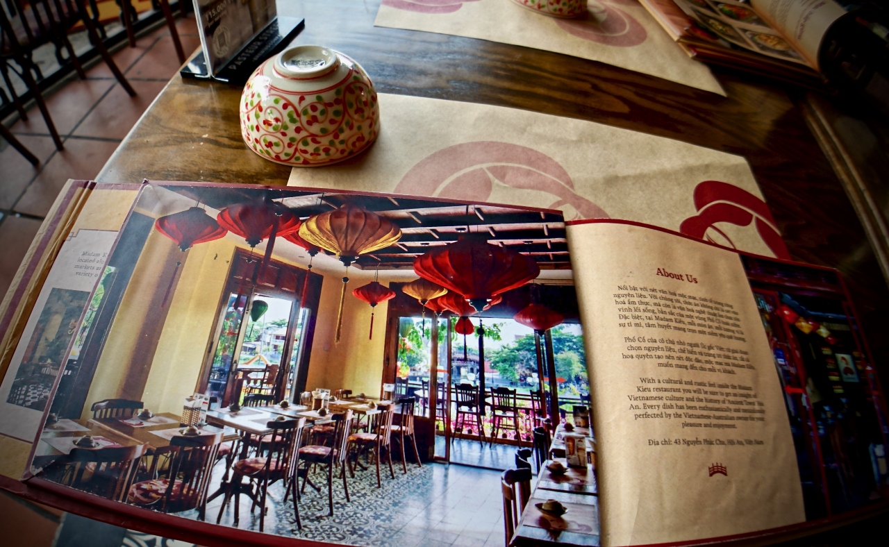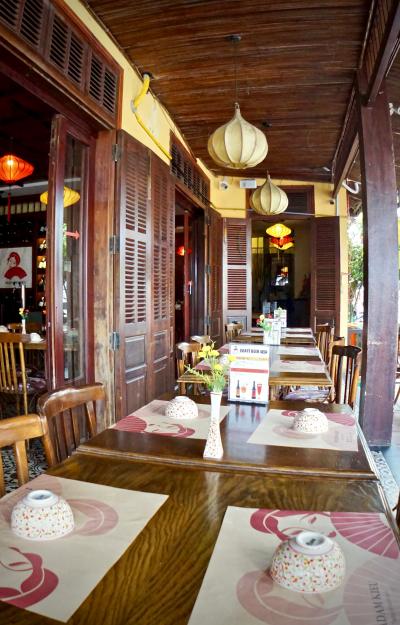 眺めの良さそうな、二階に即、上がります。 店の雰囲気は、超高級…ホイアン名物のカオラウやホワイトローズも自家製…ベトナム料理だけでなく、欧米風料理もメニューにあるようです。