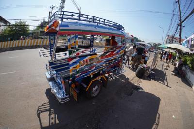 まずは、トゥクトゥク(のでかいやつ)に乗って、「タラートサオ」~