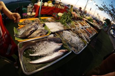 ・更に歩いてゆくと、川沿いにたくさんのレストランが開きます。またビールを飲んでお食事。川魚がメインだと思いますが、これらを美味しそうと思うか、やばそうと見るかは..その人次第......