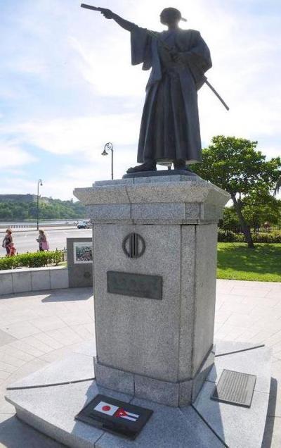 なぜか、ハバナの街の海沿いのど真ん中、かなり目立つ場所に、「お侍さん」が立っています。