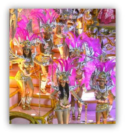もう一つは、サンパウロやリオデジャネイロでは、「エスコラーサンバ(サンバスクール)」と呼ばれるサンバ学校(実際には学校ではなく地域の集まり観たいもの)同士の競い合い(試合)方式となります。