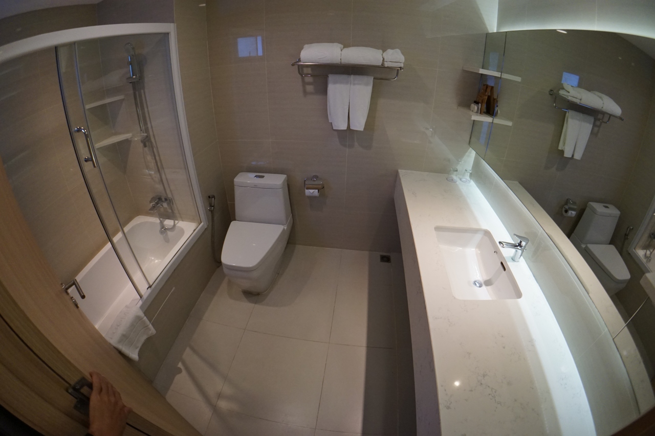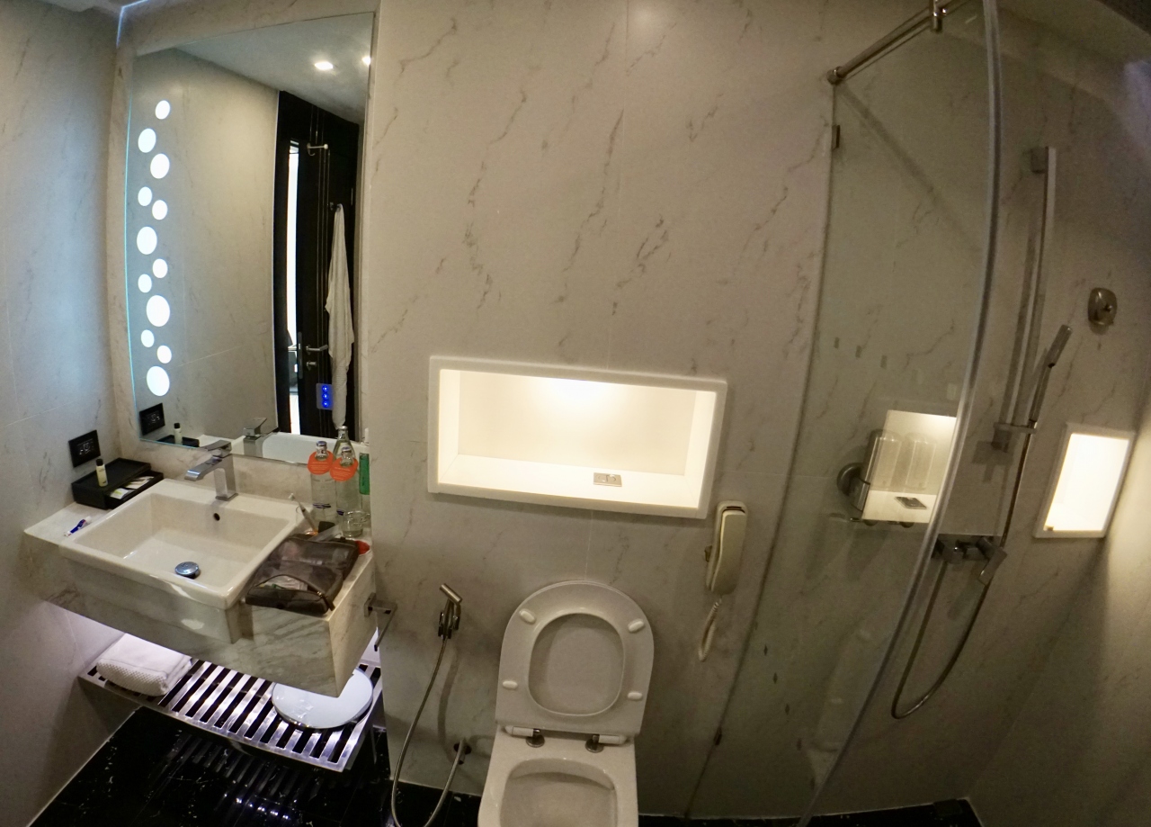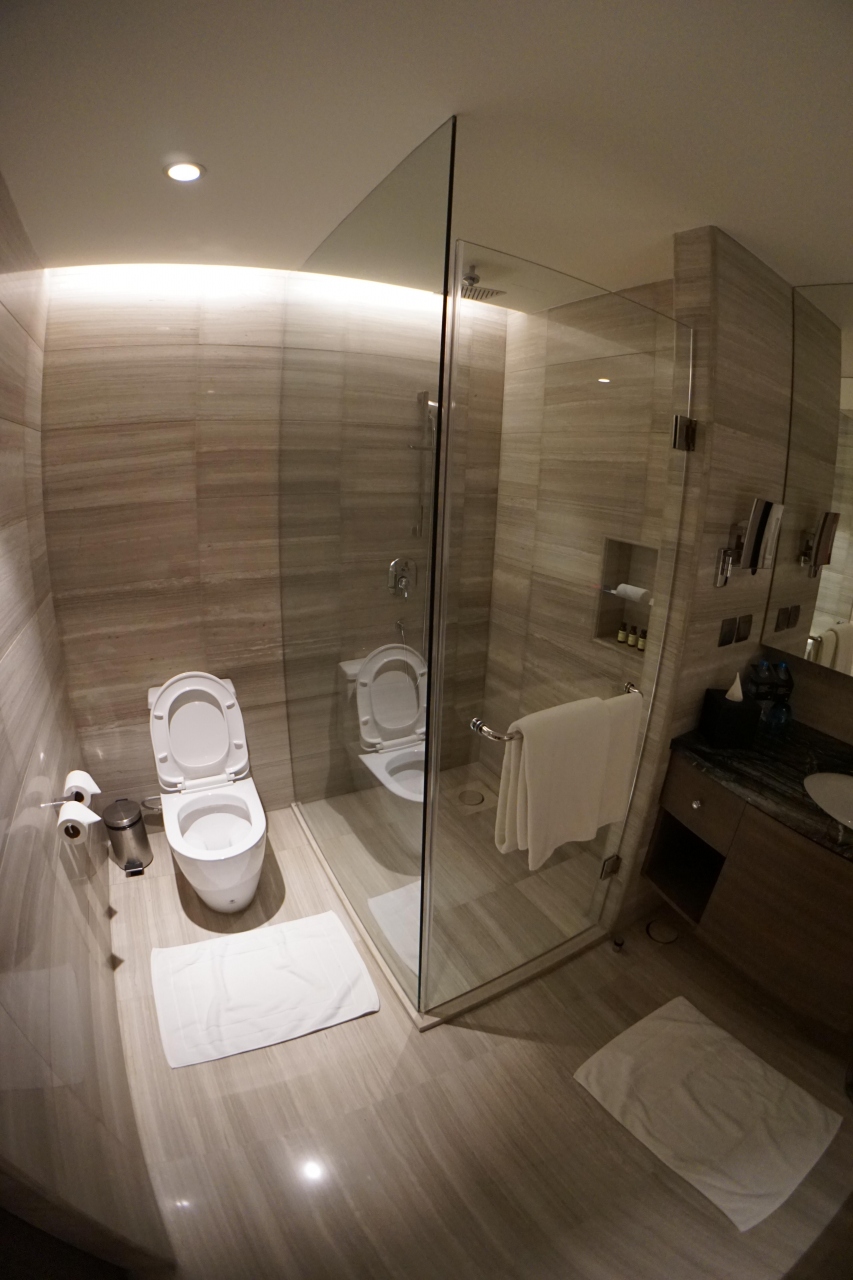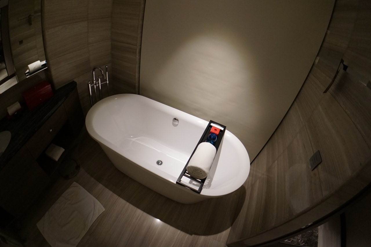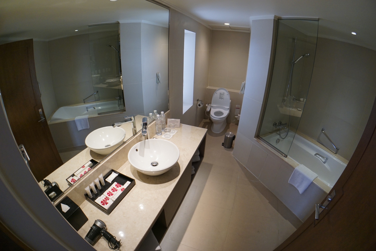 ただチェックイン時(14:30前後)、ちょっと問題発生。私が希望した高層階の掃除がまだ終わっていなっということで、ロビーで待たされる事約45分.......他の客もたくさん待たされていたので、時間が悪かったのか?.....アレンジが悪すぎるのか?.....こんなでかいホテルなんだからいくらでも代わりの部屋は手配できそうな気が.......しかも、案内されたのは、客室としては低層の33階......待たせてこれかよぉ.....ホテルマンたちは、テキパキと素晴らしい動きをしている(様に見える)だけに、もったいない対応です......(一応、マネージングにクレーム入れておきました)