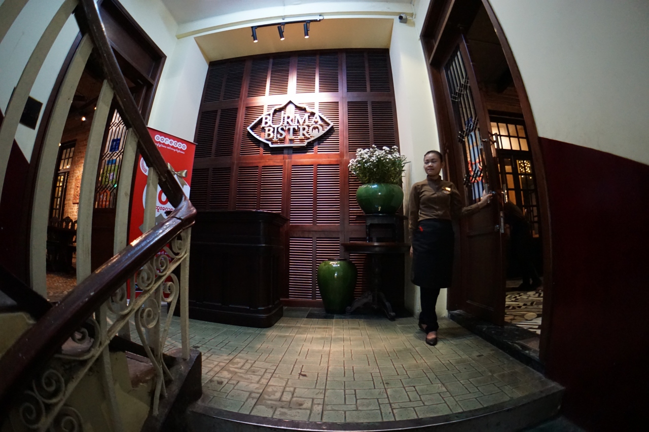 入口めちゃ怖....入ると....おおおっ.....すっごいギャップ!中は欧米人がたむろっていた、とても豪華な雰囲気のレストラン(ビルマビストロ/ヤンゴン/ミャンマー)