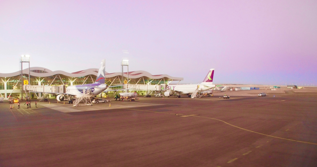 いずれにしましても、こんな田舎の小さな空港なのに、一見、国際空港的レベルの、非常にすんばらしいチリらしいデザインの空港ターミナル......アタカマ砂漠の入口にはふさわしい空港施設と呼べそうです......- 旅行時期