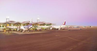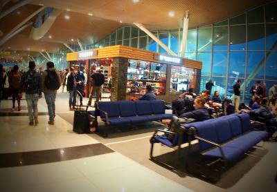 .....この空港は、ピカピカ......小さいながらも、天井も高く、非常に居心地のいい空港です.....
