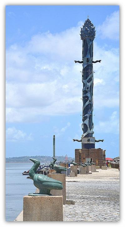 「マルコ・ゼロ」から対岸に見える巨大なモニュメント。....な....なんじゃ~ありゃぁぁぁ~!?。行ってみな、あかんでしょう~!(レシーフェ/ペルナンブコ州/ブラジル)