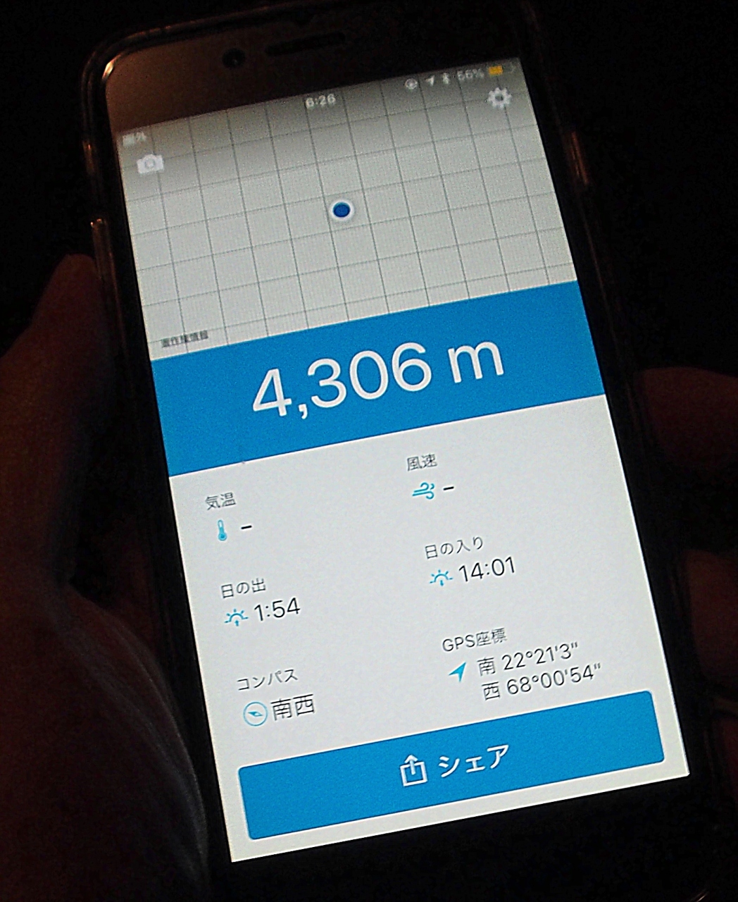 真っ暗のうちに出発し、手元の高度計はどんどん高度を上げて行く。