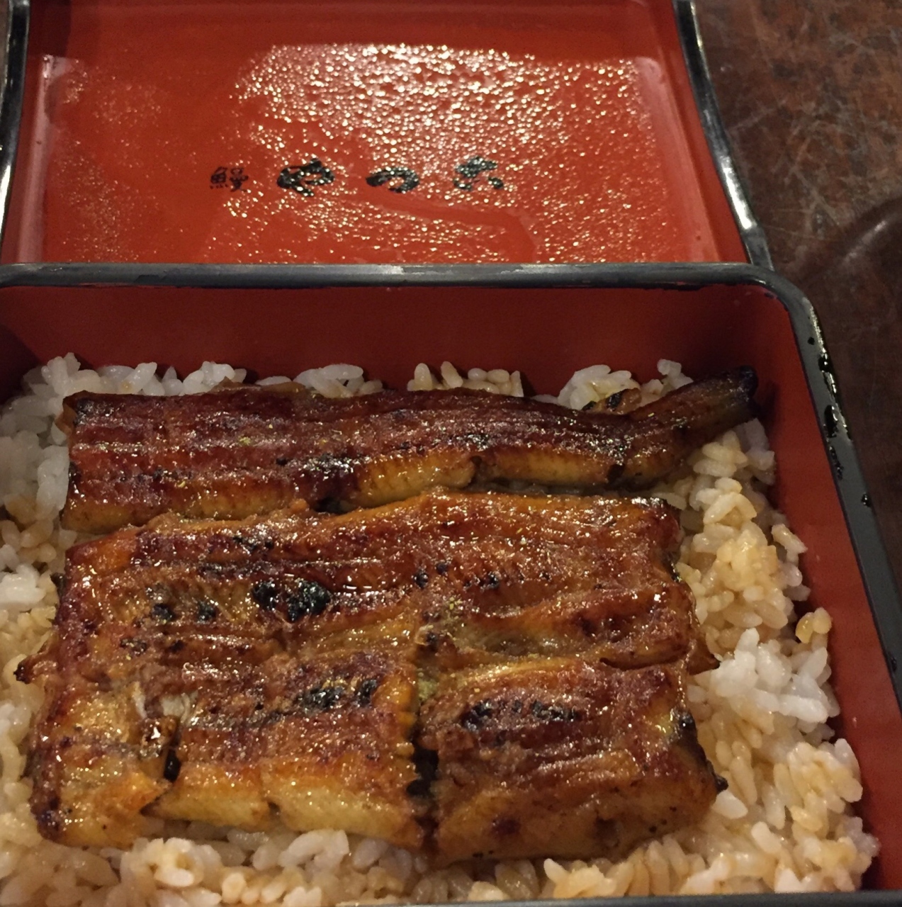 出て来た箱の蓋を開けたところ.....小さな鰻が、申し訳なさそうに、乗っかっていました。