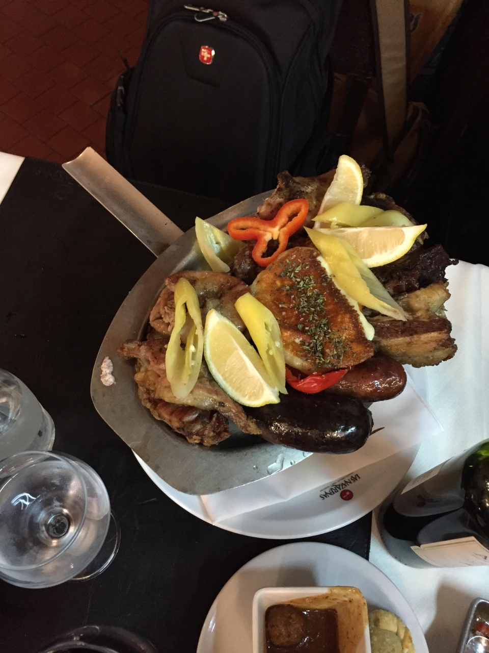 ○「パリジャーダ(Parillada)」とは、骨付きリブ、レバー、腸の内臓、豚肉・チキン、チョリソー(ソーセージ)、モルシージャ(血入りソーセージ)など肉のごった焼きの事。この料理を出すレストランを「パリージャ」というそうです。- 旅行時期