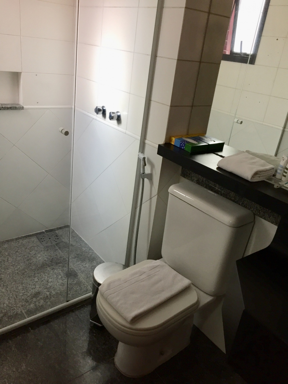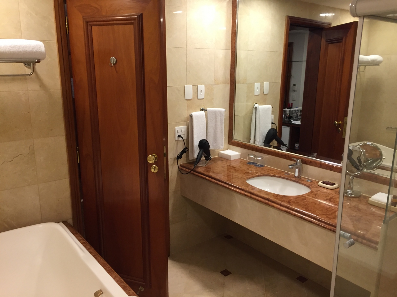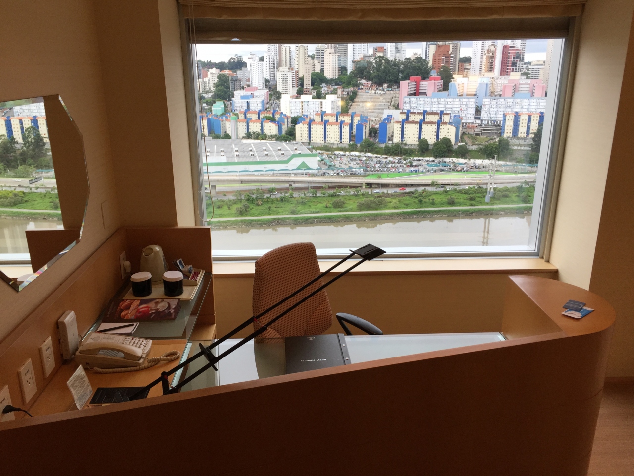 余りのショボさに、流石に私も仰け反り、ロビーに踵を返し、部屋を変えてくれとお願いしたところ、200レアル(6000円程)追加すれば、14階の部屋で、15階のラウンジを使える、と提案されたので、即移動しました。