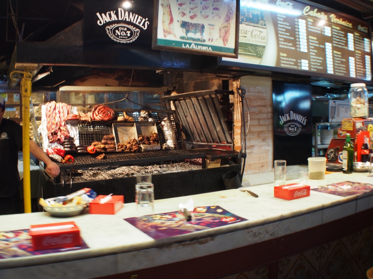 二階も席がありますが、埃だらけでひどいので、一階の鉄板焼きの真ん前のカウンターで、ビールを飲みながら、熱々のアサードに喰らいついてください。