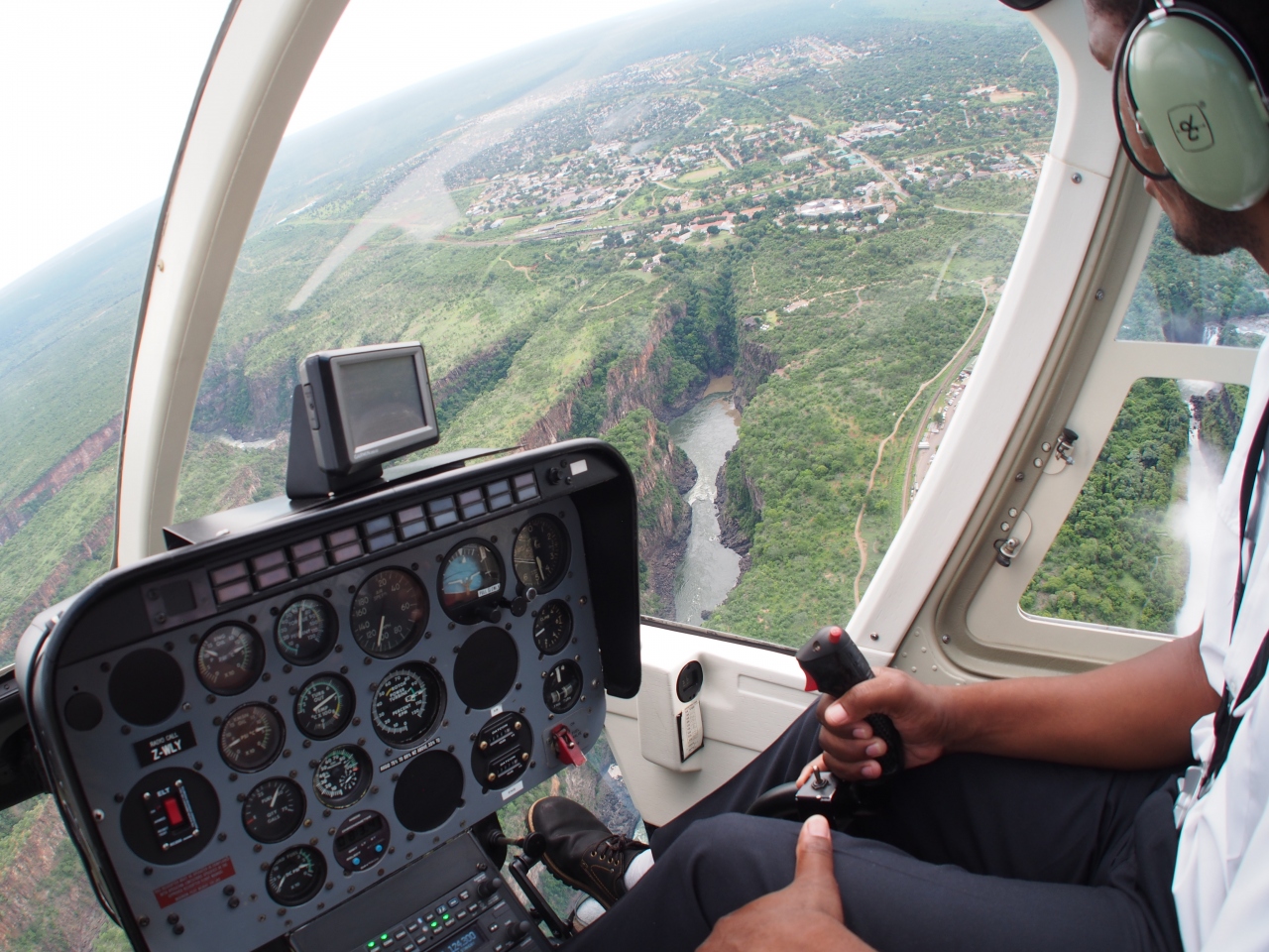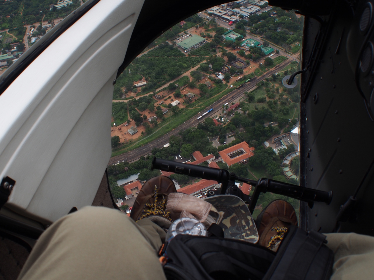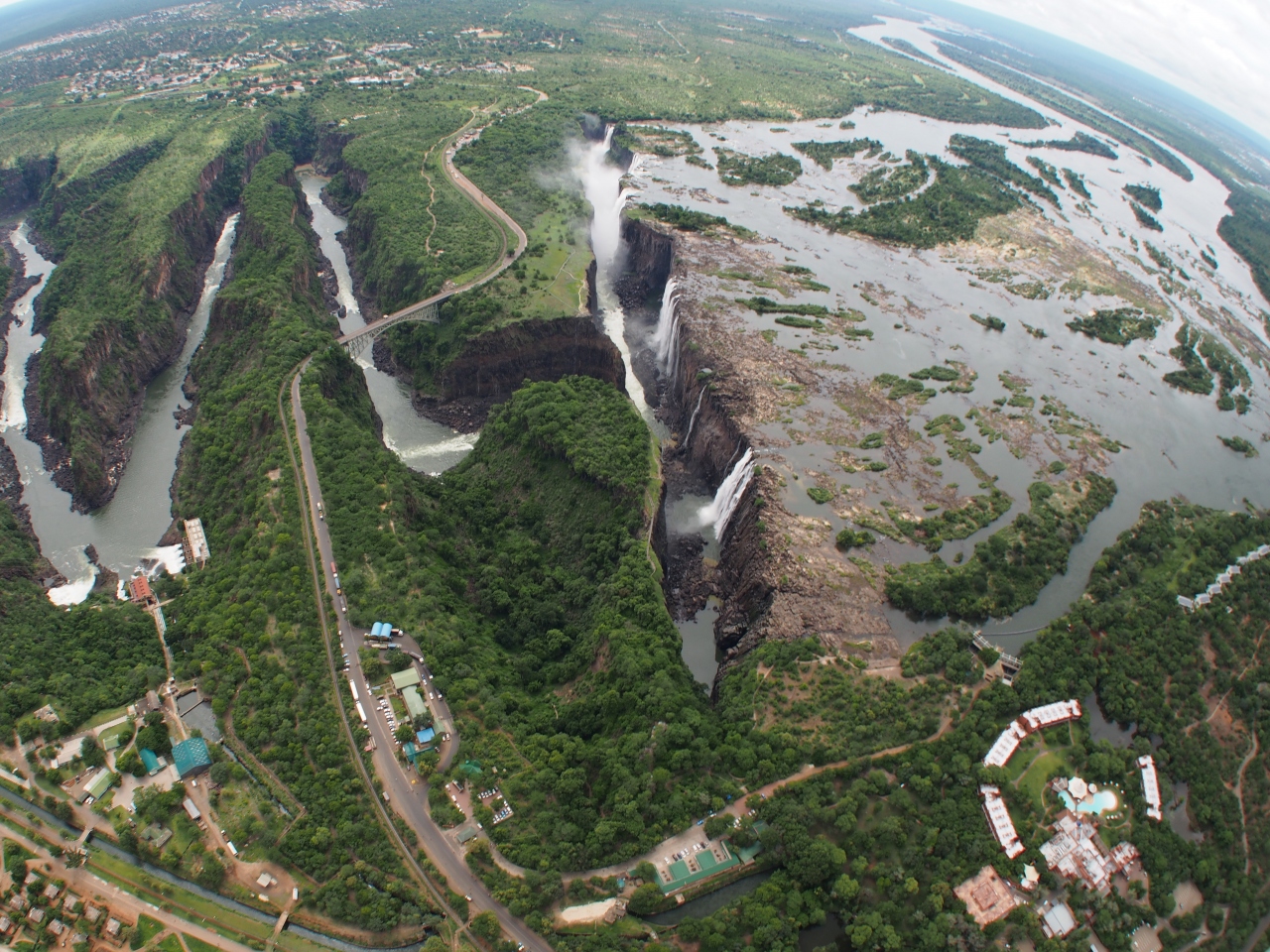 風の向きにより、水しぶきの量が違うのですが....もう、ビショビショ!カメラもやばい感じの中で、ザンビア側の滝の上を目を凝らして視てみると......