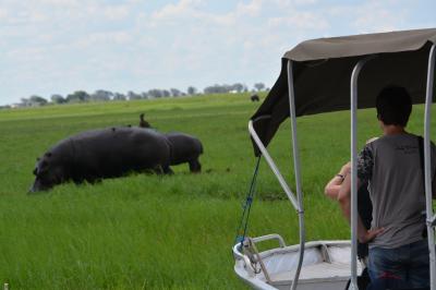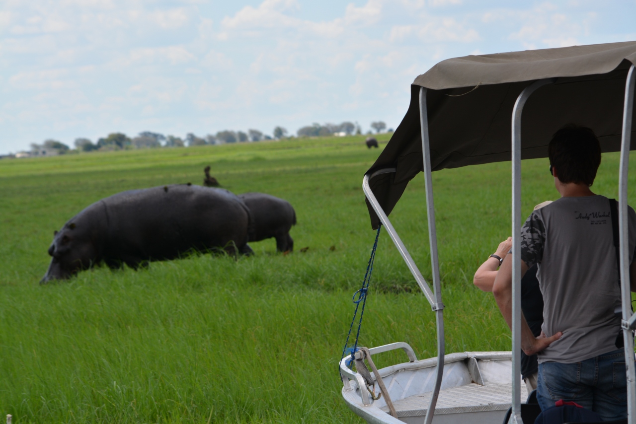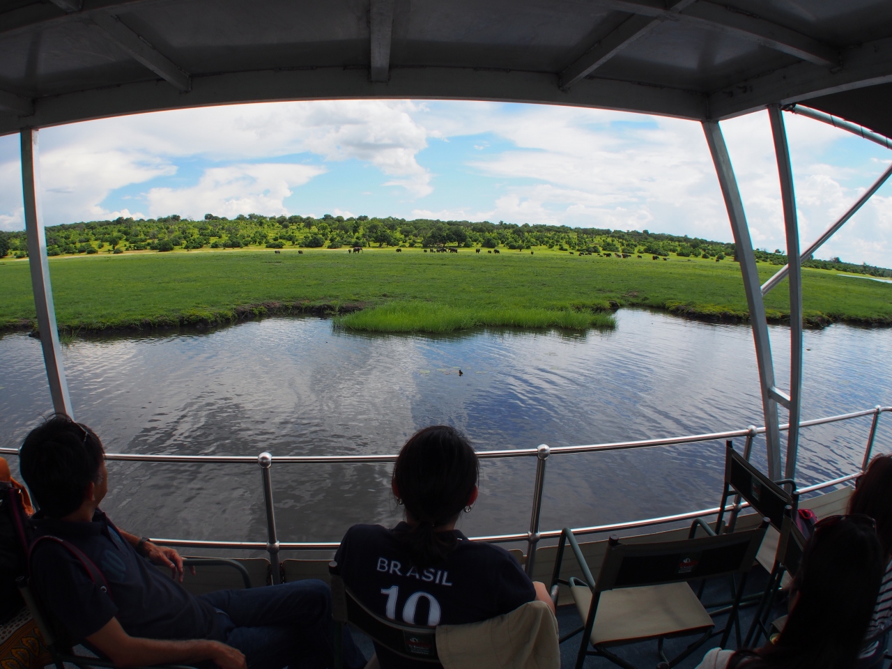 小さいボートで、静かに、ゆっくりとチョベ川(チョープ川)を渡るツアーです。ホントに静で静寂の中、の~んびりと船から見る野生の王国は、本当に素敵です~