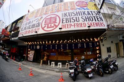 明るくて、ド派手な看板の(北海道から来た)2度漬け禁止の「串カツ屋」。でも、一人じゃかなり入り辛かった...かな...(ポロンポン駅からすぐ/バンコク/タイランド)