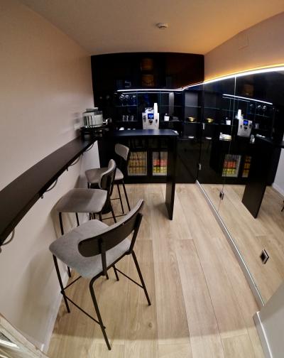 この本社の一階に、このボンフィーノという小さな喫茶店があります。入口は、社員と一緒に正面から入る必要があり、社員の為の喫茶店と思いきや、一般の方も堂々と入れます。
