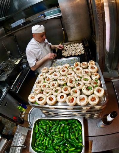 熱々にオリーブオイルが溢れたマッシュルームを、二本の爪楊枝で器用に突っつきながら、ホワイトワインを飲みました。