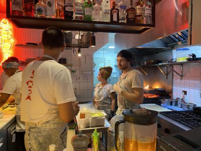 店長は、ドイツ(デュッセルドルフ)や日本でラーメン修行した日系人(日本語可能)の方です。