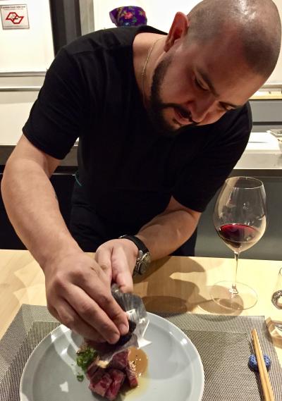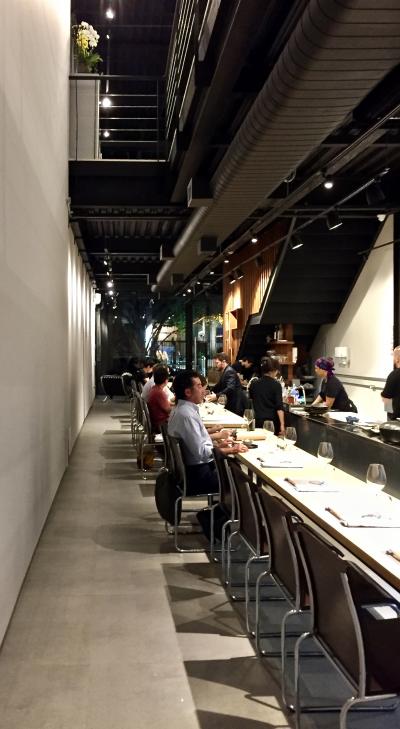 全てカウンター席で、客の目の前には調理台があり、シェフの包丁使いなどの一挙手一投足、素材の解説などの喋りも味わいながら食べることができる...というコンセプト。