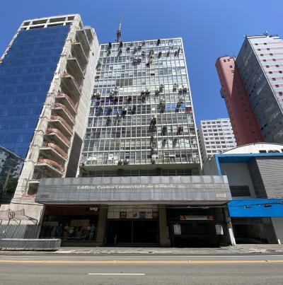 具体的には、(パウリスタ大通りから下がると、角にある)「バーガーキング」の道を下り、右手にカルフール・エクスプレス(オレンジ色の店)を越え、青っぽい間口のビル、さらにその先にある地下駐車場の入口を過ぎると…「Edificio Centro Comercial」という小汚い・ボロボロの間口の広い入口を持つビルが出てきます。