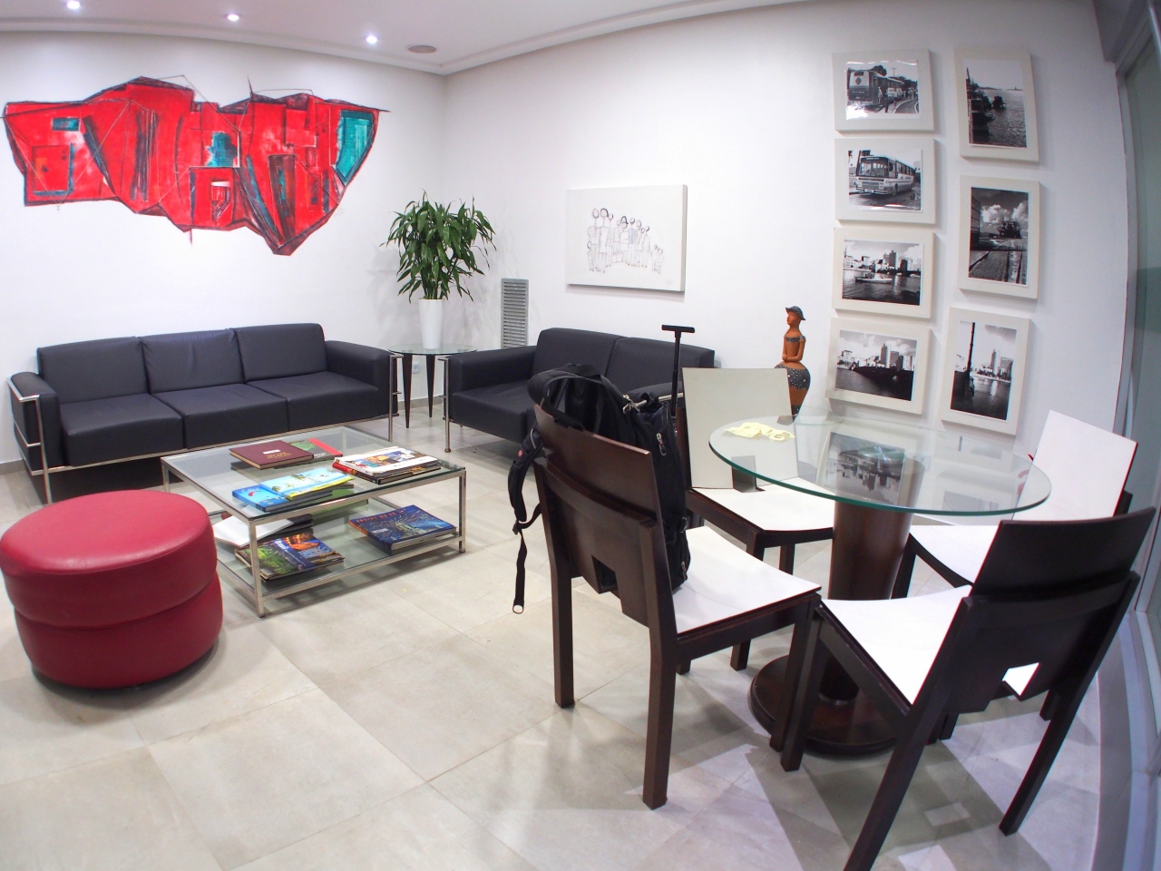 荷物検査に入らず.....要は、誰でも往来できる一階の訪問客を迎える場、向かって、づ~っと左の方に歩いて行くと、旅行代理店の様なブースがあり、そこで鍵を貸してくれます......