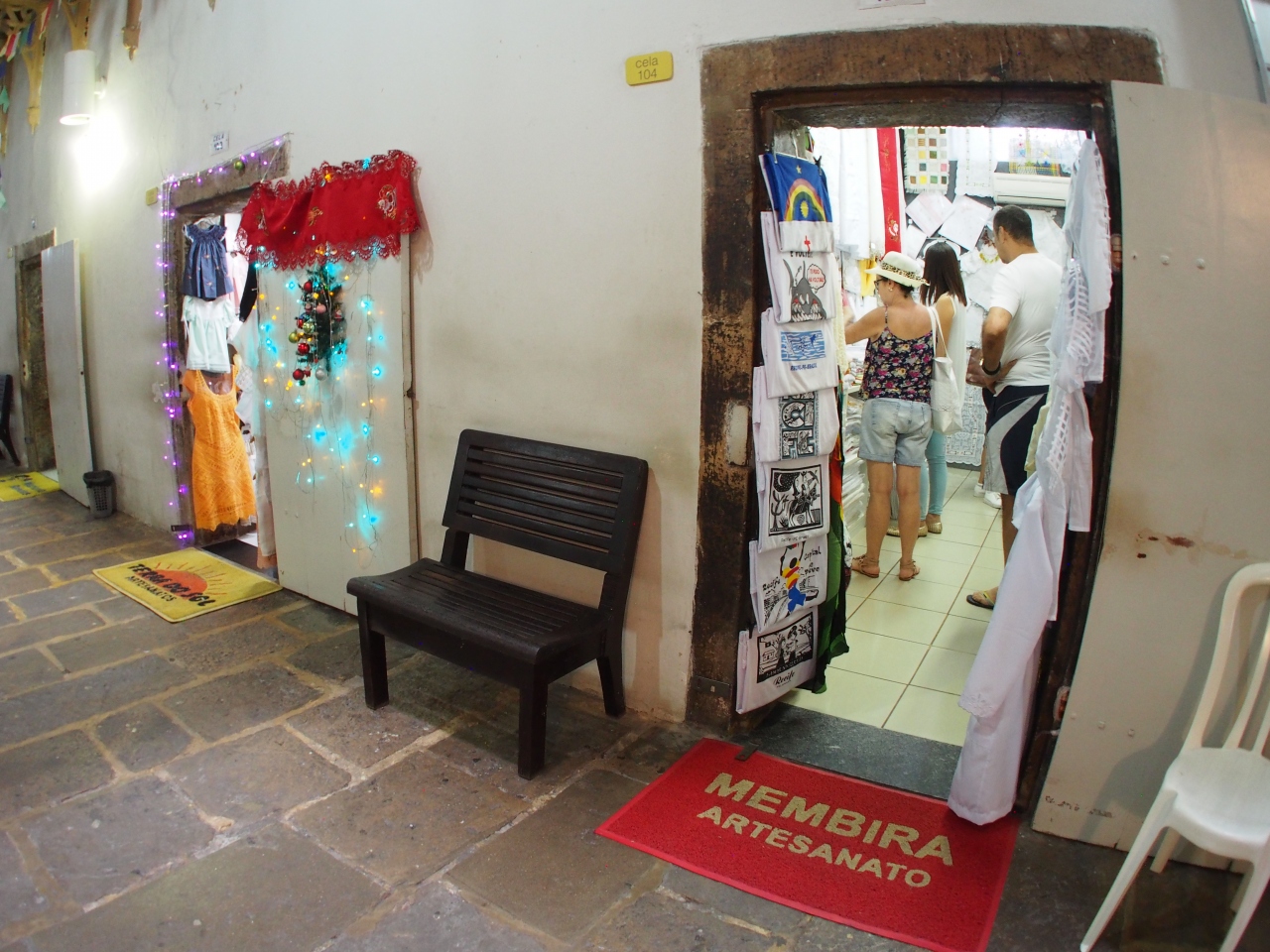 昔の独房の檻が外されただけで、その独房の中が、それぞれ民芸品を売るお土産屋になっています.....苦笑)