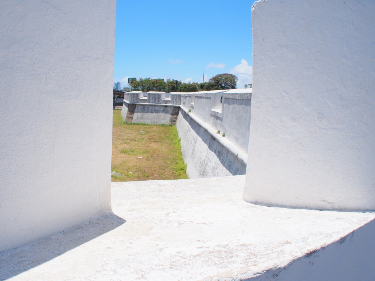 旧駅舎の前を通過し、バスターミナルも通過、海の方に向かうと、何やら、昔の植民地時代の砲台跡が見えてきます。