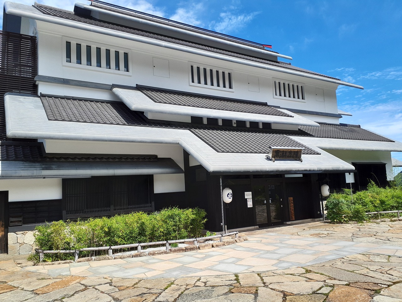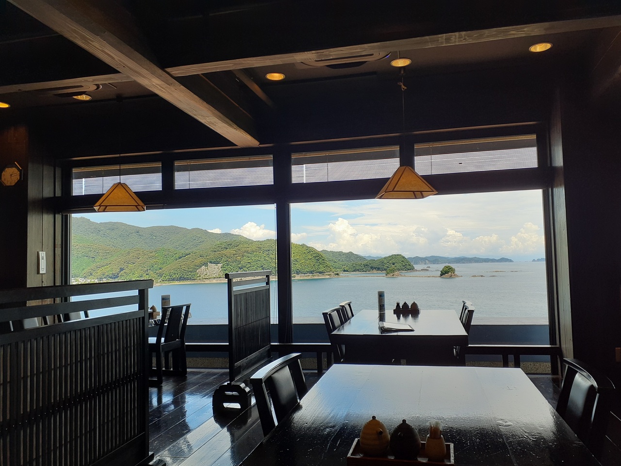 広いタタキから館内に入り板張りのロビーを抜けると、眼下に久礼湾の景色が広がります。