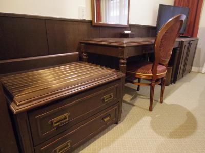 フロントロビーから客室までダークブラウンで統一されていて、英国調のインテリアが随所に置かれていました。