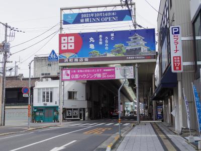 丸亀駅前広場から左に進むとアーケードが現れます。