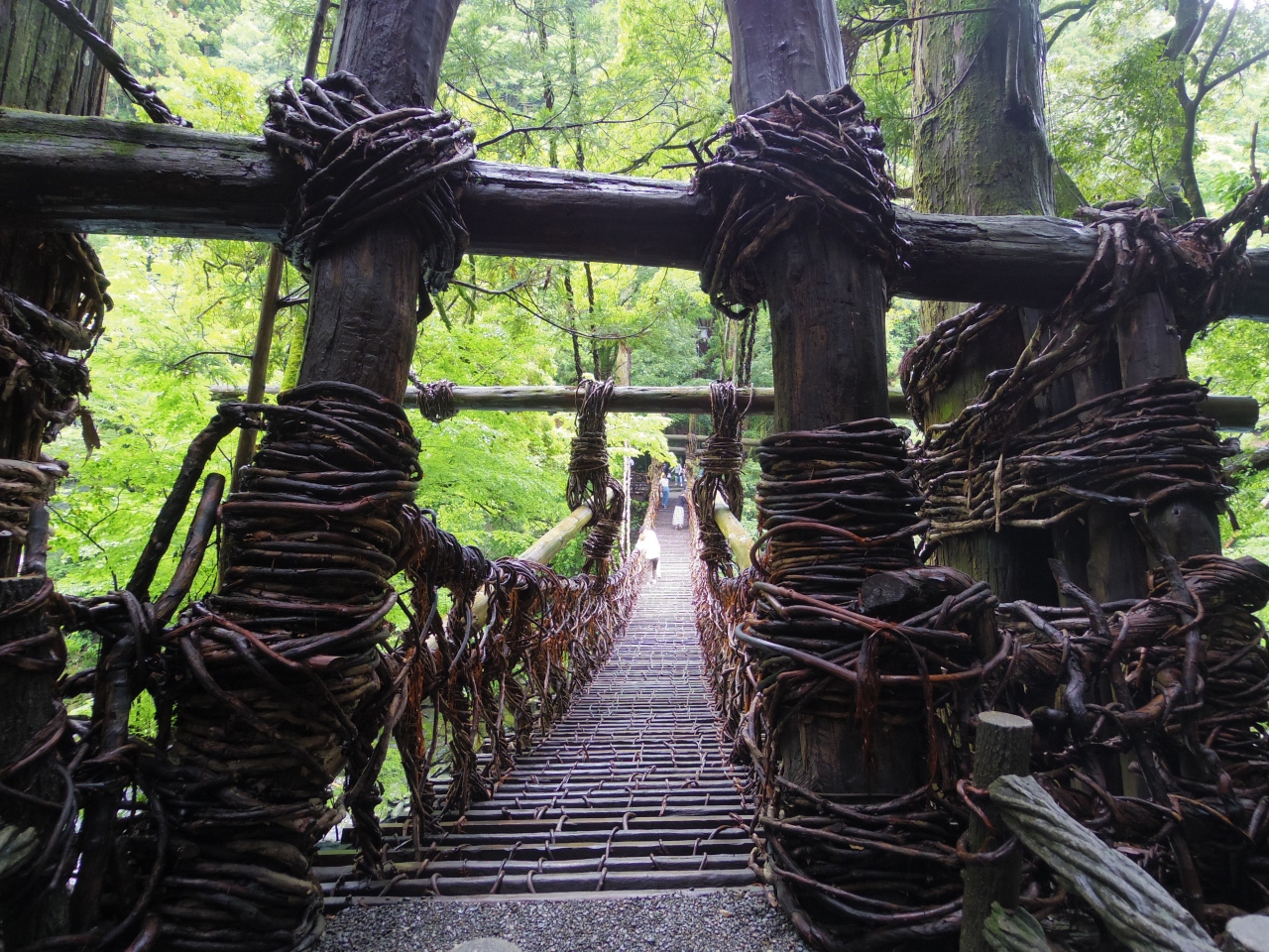 橋を支える支柱にカズラが幾重にも巻かれていて、支柱も大きな木が何本も使われていました。