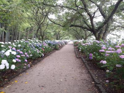 土手の上が遊歩道になっていて、そこにも両脇に紫陽花が植えられています。