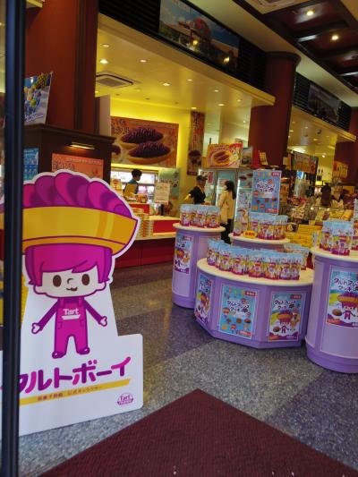 奥には紅芋タルトの工場があり、ガラス越しに見学ができます。