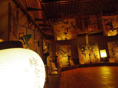展示室一は薄暗い部屋の上下段にずらっと屛風絵が飾られており、提灯を持って観覧する、という絵金祭りの体験が出来るようになっています。