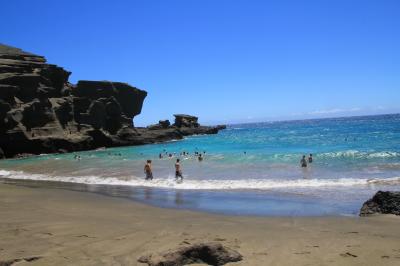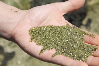 ガイドブックに載っているような色ではなく抹茶色に近い感じのビーチですが、良く見ると宝石ペリドットの粒が輝いているのが分かります。