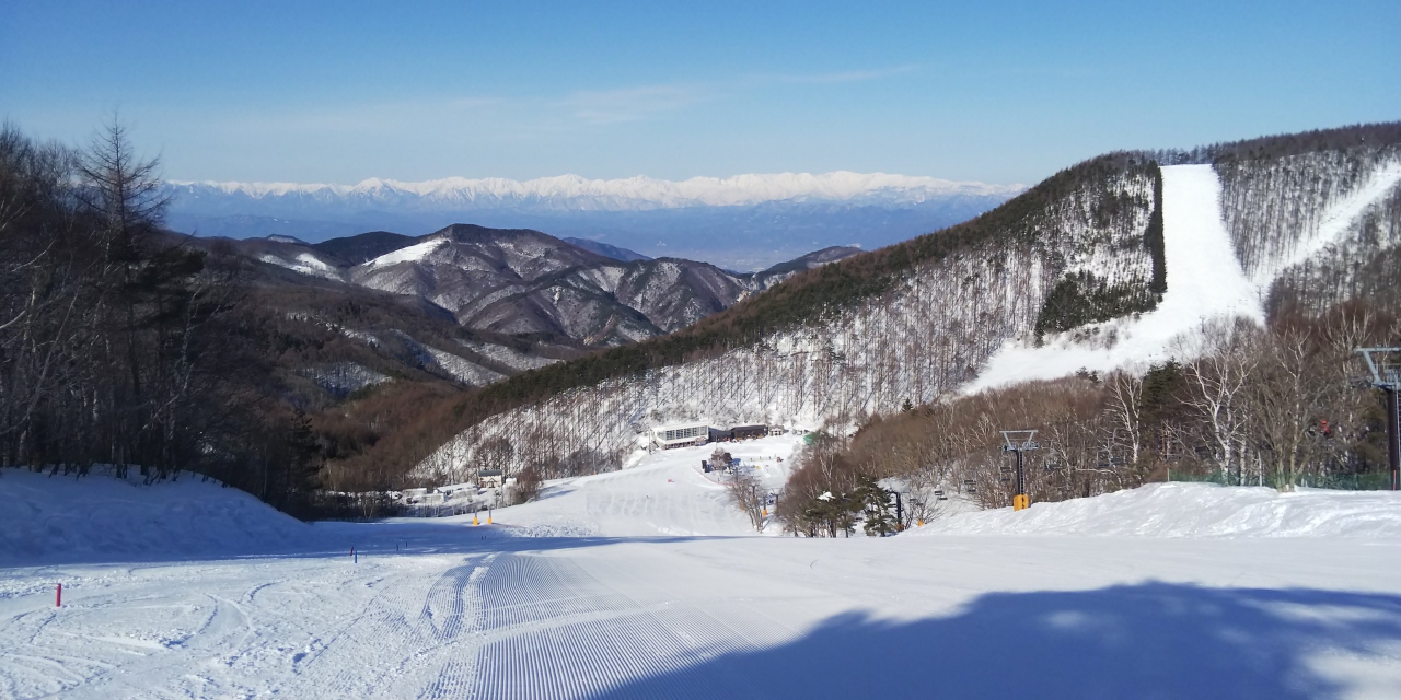 今シーズンは週末のみの営業です。 ここのウリは何と言っても北アルプスの絶景を眺めながらの滑降ですね