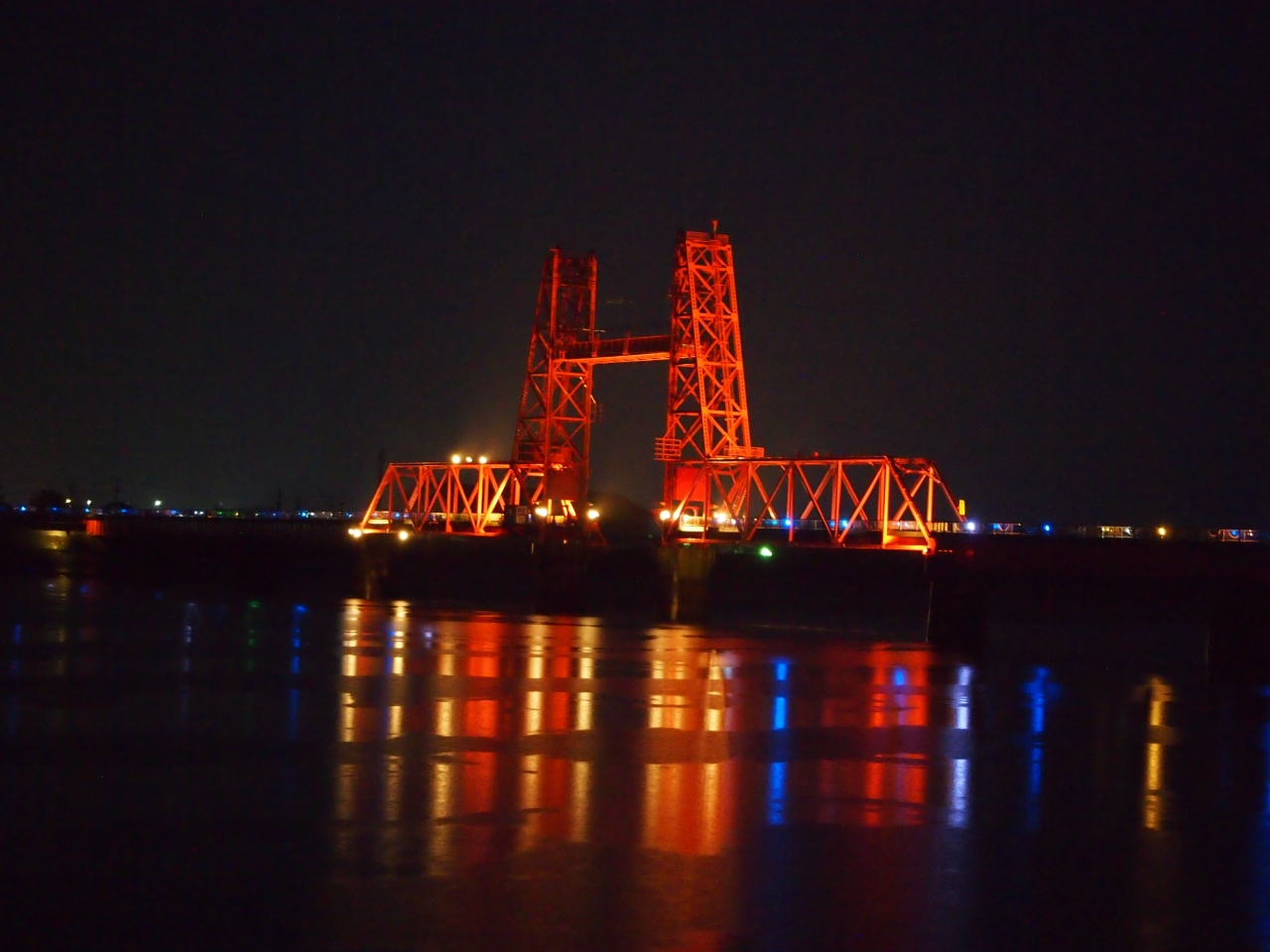通常は川を航行する船のために橋の中央部分がせり上がった状態ですが、列車が通る際は下がって列車を通行させるという大変珍しい橋です。