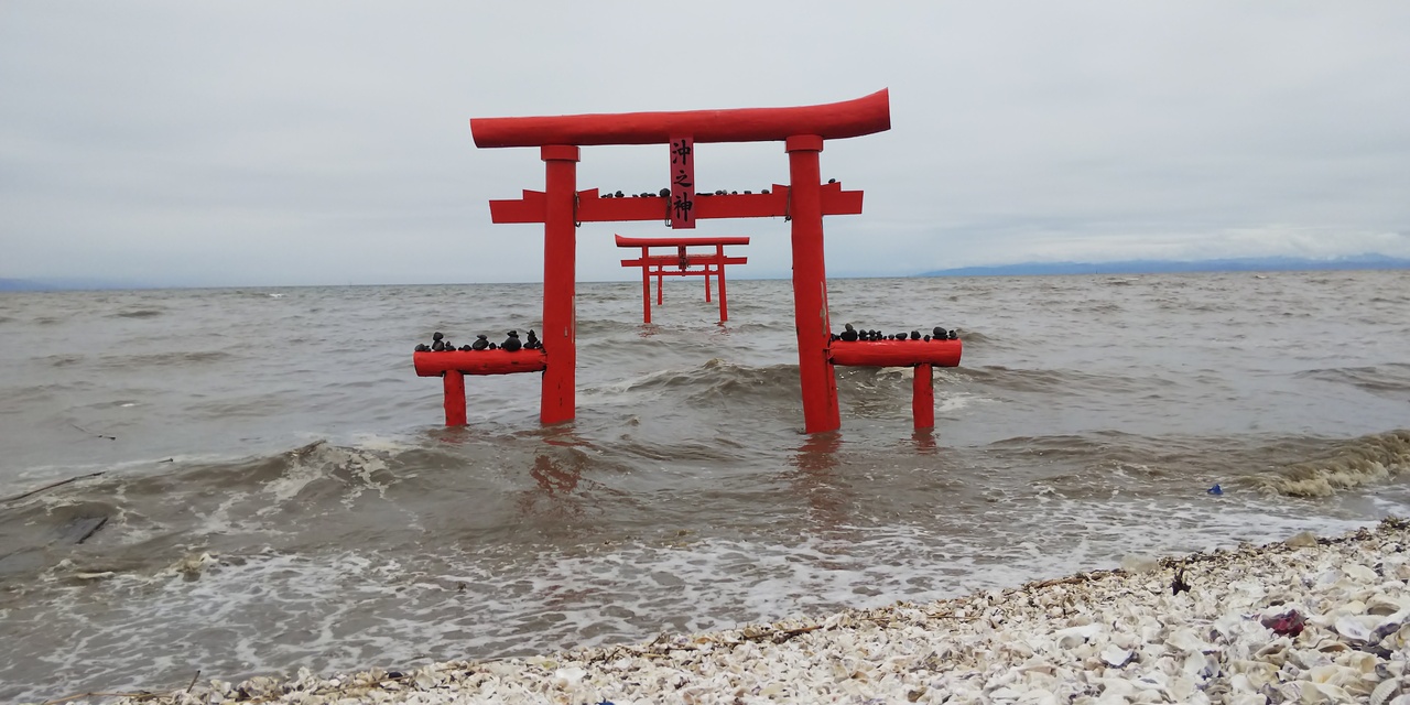 太良町の有明海に浮かぶ海中鳥居。国道沿いですが看板が小さいので見落とさないよう注意です