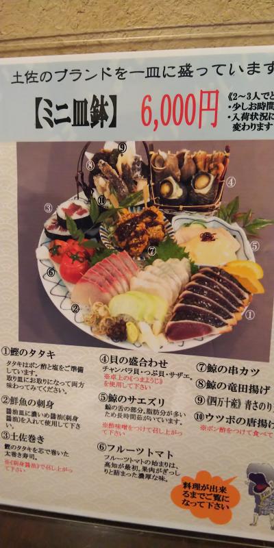 席だけ予約する事もできましたが、折角高知に来たのですから「ミニ皿鉢」を注文しました。