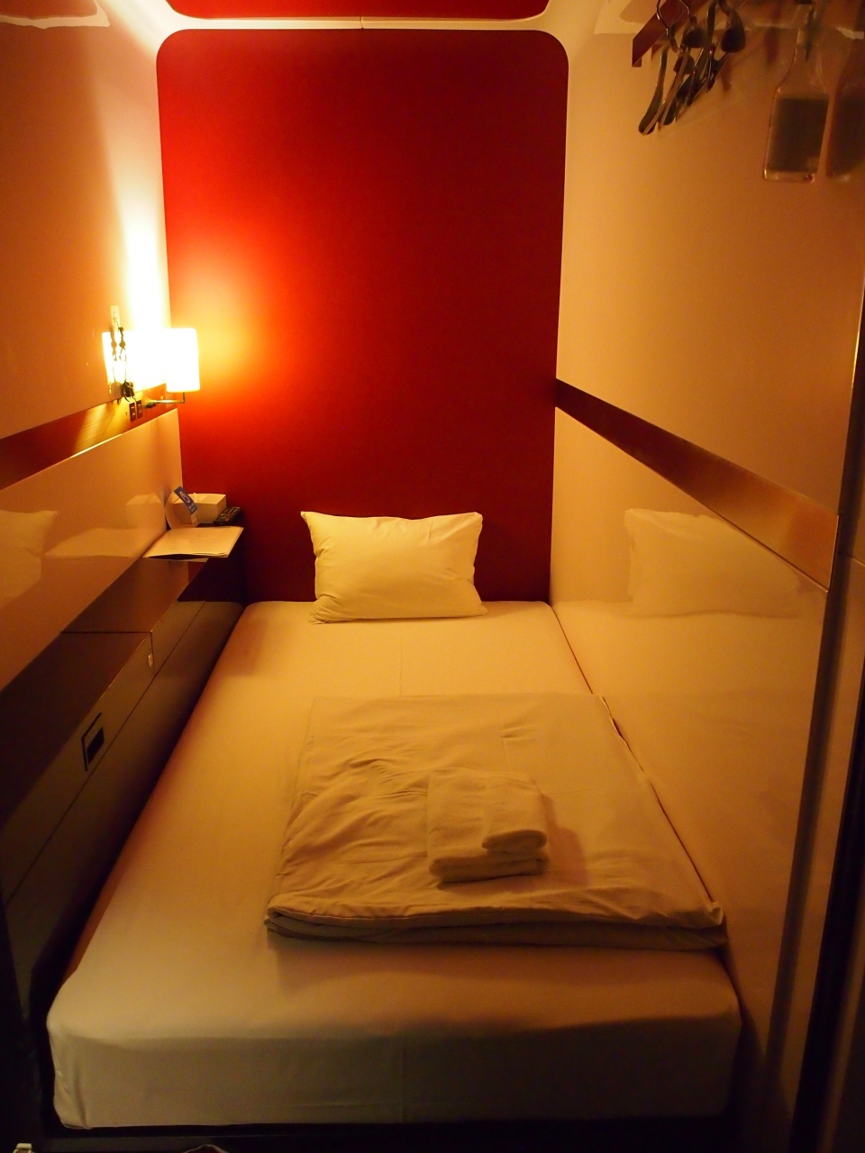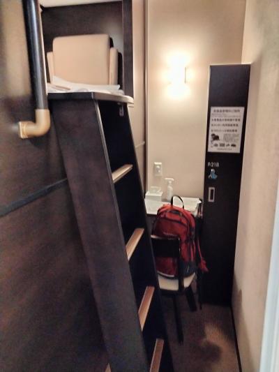寝るだけならどこでも構わない人種なので、宿泊サイトで見たこちらのホテルのカプセルルームに2泊しました。 一応窮屈ながらも個室っぽく、冷蔵庫やロッカーも完備しています。 ただ、カプセルタイプなのに1泊5880円もします。 今回は全国旅行支援の割引が適用されたので1泊4700円ほどで更に2000円分のクーポンが付いたので宿泊しましたが、元の金額だったら絶対に泊まりません。 まあ1泊3500円くらいが妥当な金額かな?