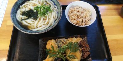 注文したのはランチ定食 かけうどん+今日の天ぷら+今日の御飯がついて550円と大変お値打ちでした。