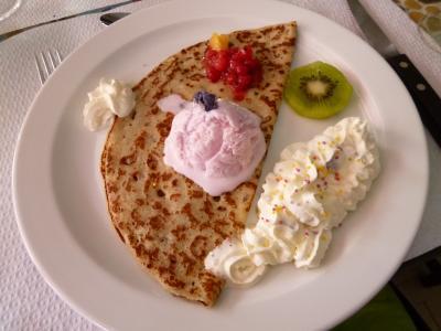 スミレアイスとともにアツアツのクレープと一緒に頂きました。