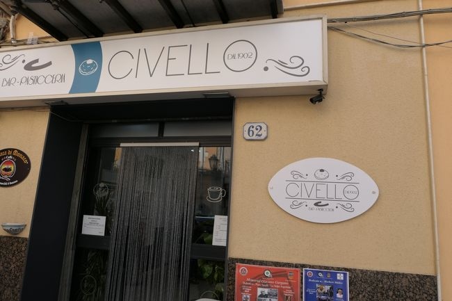 それを越した左側にカフェバール「Vizi e sfizi di Carapezza Giuseppe」。