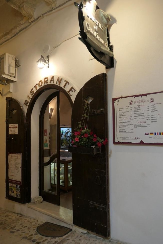 ビエステ旧市街のメインストリートであるビア カルロ マフロッラ通りに面したトラットリア「Al Cantinone」。