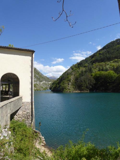 アブルッツォ州ヴィッララーゴ(Villalago)のサン・ドメニコ湖とEremo di San Domenico