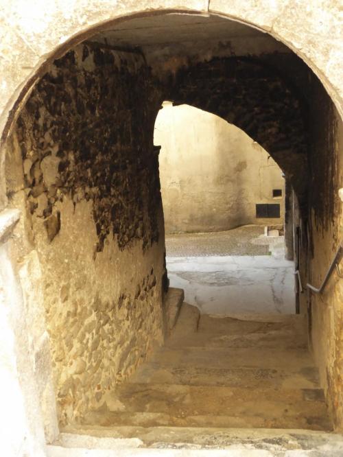 細い路地にアーチやトンネルがかかり、